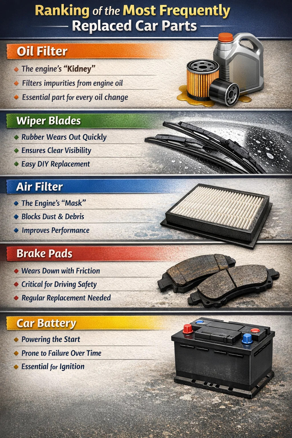▶En Sık Değiştirilenlerin Sıralaması Araba Parçaları